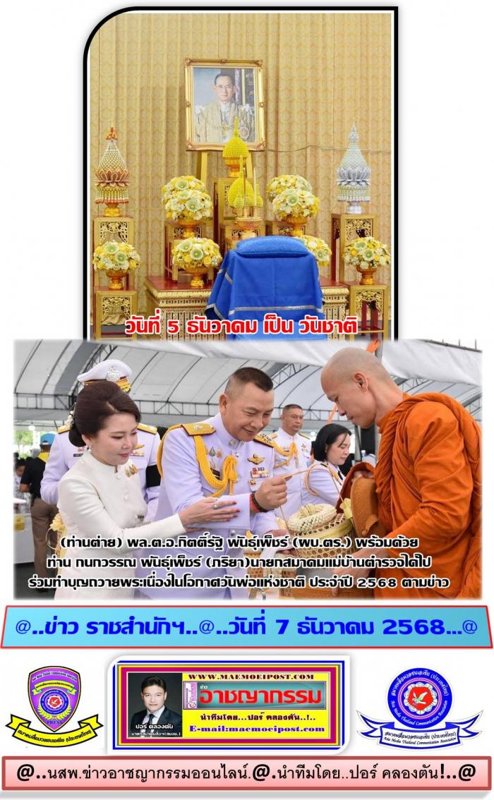 (ทำบุญทูลเกล้าถวายวันพ่อ) (ท่านต่าย) พล.ต.อ.กิตติ์รัฐ พันธุ์เพ็ชร์ (ผบ.ตร.) พร้อมด้วย ท่านกนกวรรณ พันธุ์เพ็ชร์ (ภริยา)นายกสมาคมแม่บ้านตำรวจได้ไป (ร่วมพิธีพระสงฆ์เจริญพระพุทธมนต์ และทำบุญตักบาตร) เนื่องในวันคล้ายวันพระบรมราชสมภพพระบาทสมเด็จพระบรมชนกาธิเบศร