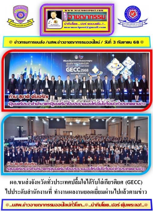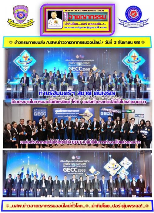 ข้าราชฯขนส่งทางบกปลื้มใจ! ได้รับโล่และตรารับรองมาตรฐานการให้บริการของศูนย์ราชการสะดวก ((GECC) ประจำปี 2568) ยกระดับเป็นองค์กรแห่งนวัตกรรมทันสมัยให้บริการประชาชนอย่างมีประสิทธิภาพด้วยมาตรฐานเดียวกันทั่วประเทศ