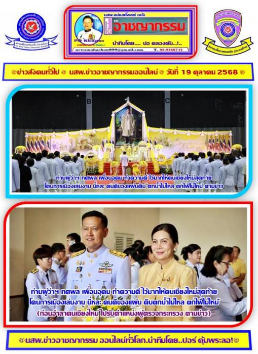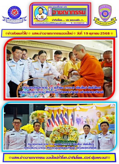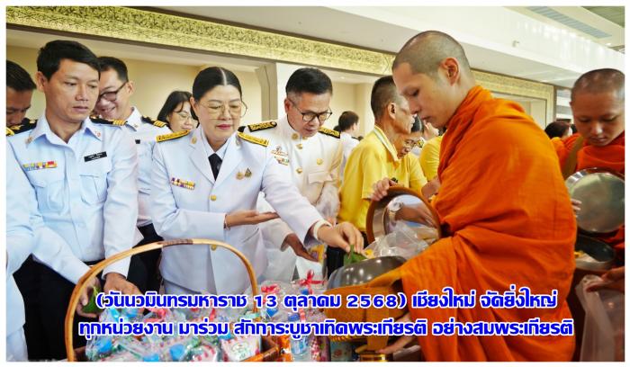 ทางองค์การบริหารไนท์ซาฟารี (องค์การมหาชน) โดยผู้อำนวยการองค์การบริหารไนท์ซาฟารี มอบหมายให้ นางสาวรัตนา เรือนทราย ผู้อำนวยการฝ่ายบริการ พร้อมด้วยเจ้าหน้าที่ เข้าร่วมพิธีเจริญพุทธมนต์และพิธีทำบุญตักบาตรพระสงฆ์และเณร จำนวน 89 รูป เพื่อถวายเป็นพระราชกุศล และร่วมพิธีวางพวงมาลาถวายราชสักการะ เนื่องในวันนวมินทรมหาราช 13 ตุลาคม 2568 ซึ่งเป็นวันคล้ายวันสวรรคต พระบาทสมเด็จพระบรมชนกาธิเบศร มหาภูมิพลอดุลยเดชมหาราช บรมนาถบพิตร โดยมี นายทศพล เผื่อนอุดม ผู้ว่าราชการจังหวัดเชียงใหม่ เป็นประธานในพิธี ณ ห้องนิทรรศการ 1 ศูนย์ประชุมและแสดงสินค้านานาชาติเฉลิมพระเกียรติ 7 รอบพระชนมพรรษาตามข่าว (ปอร์ คุ้มพระลอ – รายงาน)นสพ.ข่าวอาชญากรรมออนไลน์นำเสนอข่าวเข้าไปดูข่าวได้ที่...www.maemoeipost.com