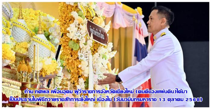 ณ.ที่ ห้องนิทรรศการ 1 ศูนย์ประชุมและแสดงสินค้านานาชาติเฉลิมพระเกียรติ 7 รอบพระชนมพรรษาอ.เมือง เชียงใหม่ เมื่อ วันที่ 13 ตุลาคม 2568 ผู้สื่อข่าวรายงานเข้ามาว่า เนื่องจากวันนี้เป็นวันเป็น (วันนวมินทรมหาราช 13 ตุลาคม 2568) เชียงใหม่ จัดยิ่งใหญ่ ทุกหน่วยงาน มาร่วม สักการะบูชาเทิดพระเกียรติ อย่างสมพระเกียรติ นำทีมโดยว่าที่...ผู้ตรวจราชการ กราะทรวงมหาดไทย ...ท่าน ทศพล เผื่อนอุดม ผู้ว่าราชการจังหวัดเชียงใหม่ (คนดีของแผ่นดิน)ได้มาเป็นประธานในพิธี ณ ห้องนิทรรศการ 1 ศูนย์ประชุมและแสดงสินค้านานาชาติฯอ.เมือง จ.เชียงใหม่