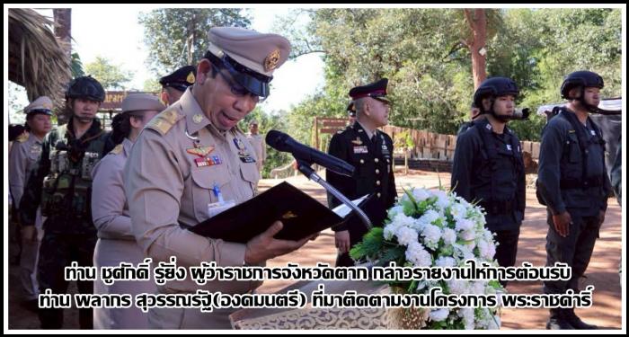 ท่าน ชูศักดิ์ รู้ยิ่ง ผู้ว่าราชการจังหวัดตากให้การต้อนรับท่าน พลากร สุวรรณรัฐ องคมนตรี และคณะ ในการมาติดตามและขับเคลื่อนโครงการอันเนื่องมาจากพระราชดําริในพื้นที่(เขตภาคเหนือ) และพื้นที่จังหวัดตากตามข่าว
