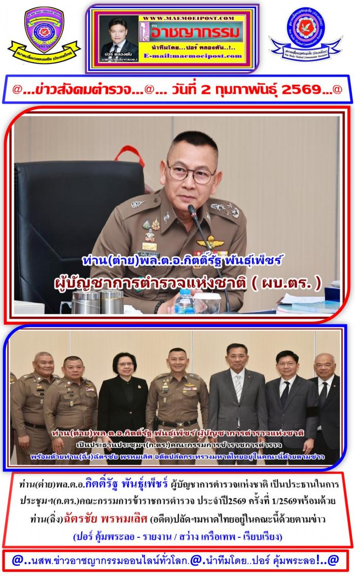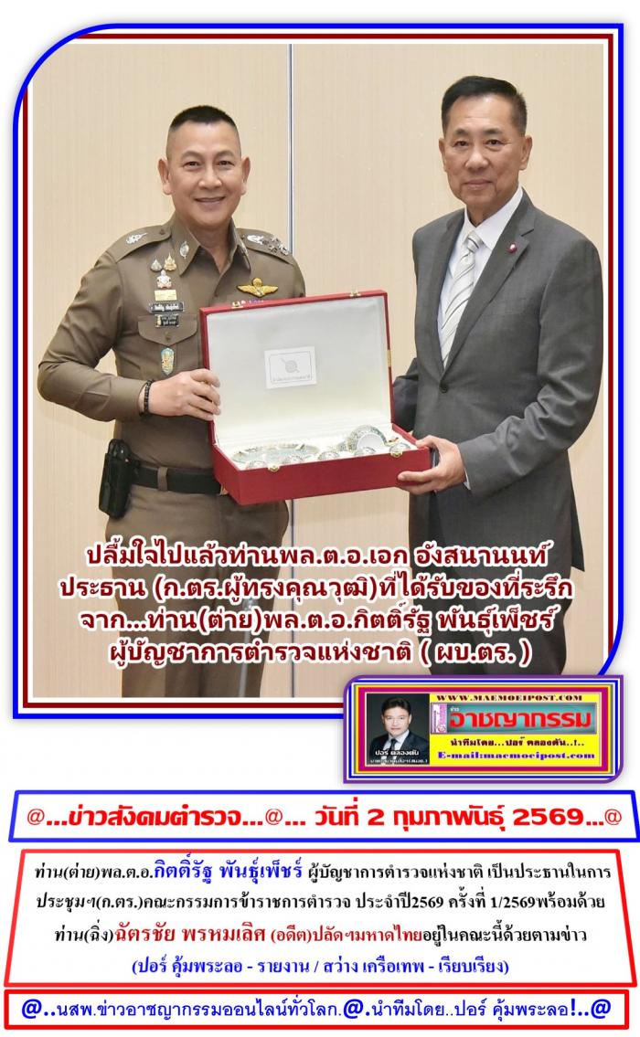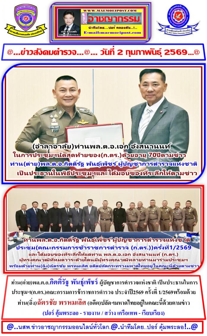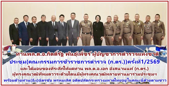 ที่ห้องประชุมฯห้องศรียานนท์ ชั้น 2 อาคาร 1 สนง.ตำรวจแห่งชาติ กทม. เมื่อวันที่ 28 มกราคม 2569 ผู้สื่อข่าว ประจำสนง.ตำรวจแห่ง ได้รายงานเข้ามาว่า ได้มีการประชุม (ก.ตร.ครั้งแรกของปี2569) ซึ่งมี ท่านพล.ต.อ.กิตติ์รัฐ พันธุ์เพ็ชร์ ผู้บัญชาการตำรวจแห่งชาติ ( ผบ.ตร. ) เป็นประธานการประชุม ก.ตร. ครั้งที่ 1/2569 โดยมี เลขาธิการ ก.พ. เลขาธิการ ก.พ.ร. ก.ตร.ผู้ทรงคุณวุฒิ รอง ผบ.ตร.และจเรตำรวจแห่งชาติ ร่วมประชุมโดยพร้อมเพรียงกัน ที่ห้องศรียานนท์ ชั้น 2 อาคาร 1 สำนักงานตำรวจแห่งชาติ เมื่อวันที่ 28 มกราคม 2569ภายหลังเสร็จสิ้นการประชุม ผบ.ตร. มอบของที่ระลึกให้แก่ พล.ต.อ.เอก อังสนานนท์ ก.ตร.ผู้ทรงคุณวุฒิ ในโอกาสที่จะพ้นจากตำแหน่งก่อนกำหนด เนื่องจากอายุครบ 70 ปี โดย ผบ.ตร. ได้กล่าวขอบคุณ พล.ต.อ.เอก ฯ ที่ได้ใช้ความรู้ความสามารถ โดยเฉพาะการบริหารงานบุคคล ช่วยเหลือกิจการของสำนักงานตำรวจแห่งชาติด้วยดีเสมอมา