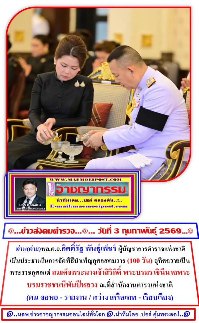 ท่าน พล.ต.อ.กิตติ์รัฐ พันธุ์เพ็ชร์(ผบ.ตร.ต่าย) ผู้บัญชาการตำรวจแห่งชาติ ได้เป็นประธาน จัดพิธีบำเพ็ญกุศลสตมวาร (100 วัน) อุทิศถวายเป็นพระราชกุศลแด่ สมเด็จพระนางเจ้าสิริกิติ์ พระบรมราชินีนาถ พระบรมราชชนนีพันปีหลวง ณ.ที่สำนักงานตำรวจแห่งชาติ..มีท่าน กนกวรรณ พันธุ์เพ็ชร์ นายกสมาคมแม่บ้านตำรวจ / ท่าน รองผบ.ตร. /ผู้ช่วยผบ.ตร. / สื่อมวลชน / เข้าร่วมด้วยตามข่าว