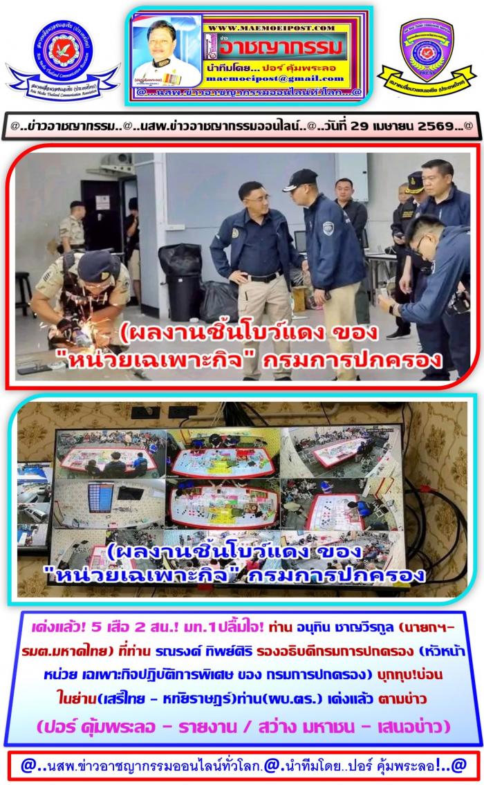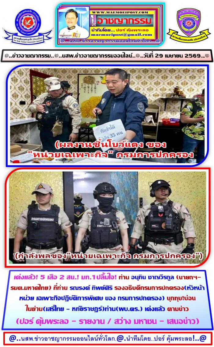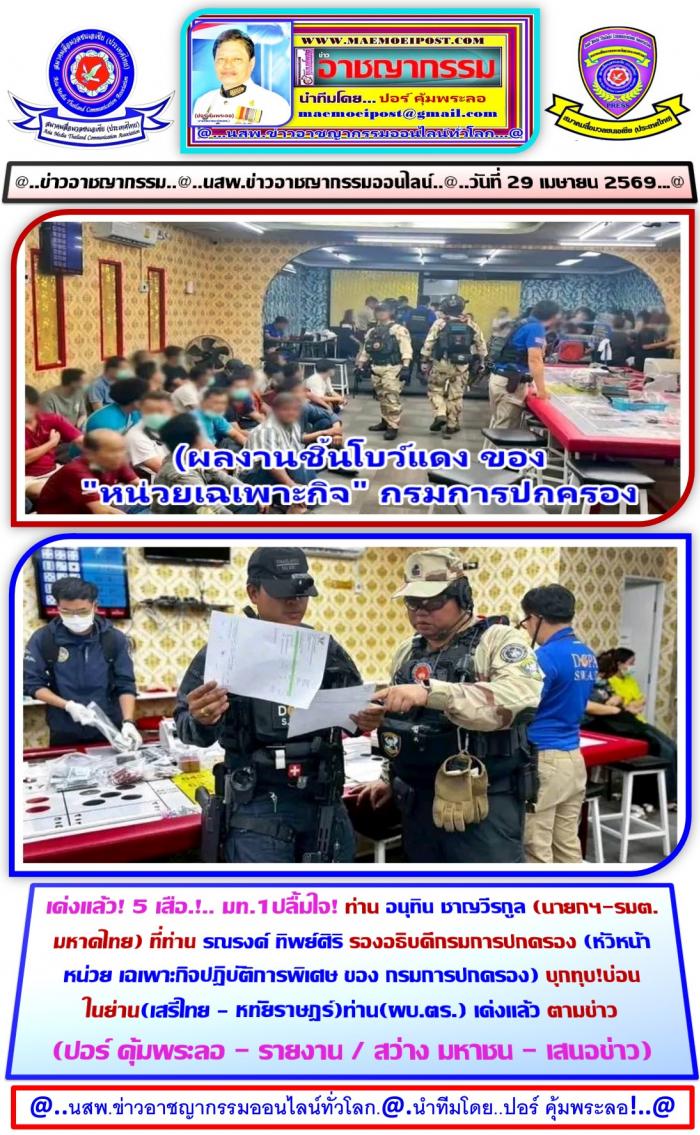 ที่สภ.นิมิตรใหม่ เขตบึงกุม กทม. ผู้สื่อข่าวประจำสนง.ตำรวจแห่งชาติรายงานเข้ามาว่าเมื่อ... วันที่ 25 เมษายน 2569 ท่าน นฤชา โฆษาศิวิไลซ์ อธิบดีกรมการปกครอง ได้สั่งชุด (ปฏิบัติการพิเศษกรมการปกครอง) นำโดย.. ท่าน รณรงค์ ทิพย์ศิริ รองอธิบดีกรมการปกครอง, /