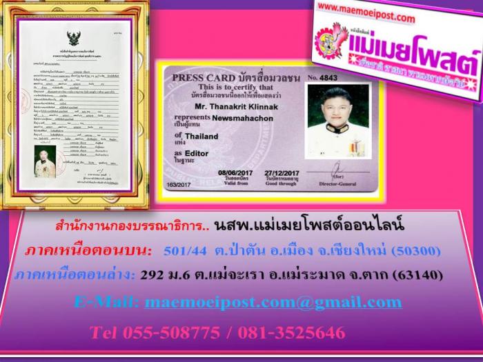 ตามข่าวดังกล่าว(ข้อมูลจาก..PRอำเภอแม่สอด ยุทธภูมิ ณ.แม่สอดรายงาน)นสพ.แม่เมยโพสต์ออนไลน์นำเสนอข่าวเข้าไปดูข่าวได้ที่...www.maemoeipost.com