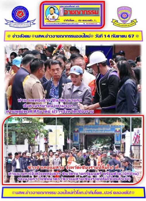 (คนแม่สายปลื้มใจ!) ท่าน นายกฯ อิ๊งค์ แพทองธาร ชินวัตร นายกรัฐมนตรี ลงพื้นที่ดูน้ำท่วมด่านพรมแดนแม่สาย จ.เชียงราย ยืนยันรัฐบาลพร้อมสนับสนุนเต็มที่เพื่อ (ซับน้ำตา) ชาวแม่สาย ตามข่าว