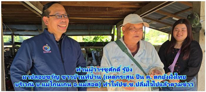 ท่านพล.ท.วรเทพ บุญญะ แม่ทัพภาคที่3 และ ท่านชูศักดิ์ รู้ยิ่ง ผู้ว่าราชการจังหวัดตาก ผู้ว่าฯตาก ลงพื้นที่เยี่ยม สร้างขวัญกำลังใจให้ประชาชนหลังเกิด(เหตุกระสุน ปืน ค. ตกยังฝั่งไทย บริเวณ บ.แม่โกนเกน อ.แม่สอด)