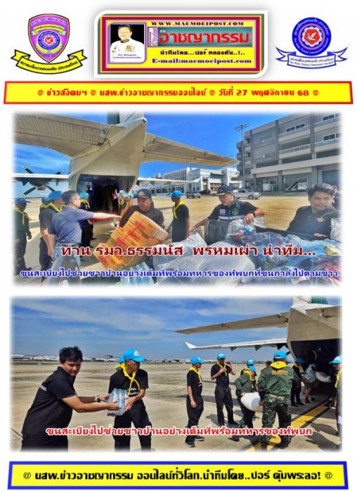 ได้สั่งการให้ใช้ปฏิบัติการลำเลียงเสบียงทางอากาศ โดยความร่วมมือของเครื่องบินกรมฝนหลวงและการบินเกษตร เพื่อเร่งส่งสิ่งของจำเป็นสู่พื้นที่อย่างต่อเนื่อง โดยในเบื้องต้นได้จัดส่งข้าวสารคุณภาพ กว่า 1,500 กิโลกรัม และน้ำดื่มจำนวน 1,000 ขวด ไปยังศูนย์กระจายความช่วยเหลือในพื้นที่หาดใหญ่ พร้อมเตรียมทยอยลำเลียงรอบต่อไปอย่างต่อเนื่องจนกว่าสถานการณ์จะกลับเข้าสู่ภาวะปกติตามข่าวดังกล่าว...(ปอร์ คุ้มพระลอ - รายงาน)นสพ.ข่าวอาชญากรรมออนไลน์ทั่วโลกนำเสนอข่าว...เข้าไปดูข่าวได้ที่...www.maemoeipost.com