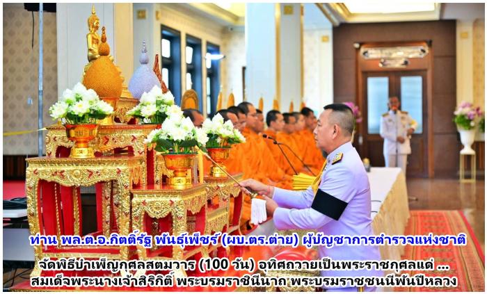 ท่าน พล.ต.อ.กิตติ์รัฐ พันธุ์เพ็ชร์(ผบ.ตร.ต่าย) ผู้บัญชาการตำรวจแห่งชาติ ได้เป็นประธาน จัดพิธีบำเพ็ญกุศลสตมวาร (100 วัน) อุทิศถวายเป็นพระราชกุศลแด่ สมเด็จพระนางเจ้าสิริกิติ์ พระบรมราชินีนาถ พระบรมราชชนนีพันปีหลวง ณ.ที่สำนักงานตำรวจแห่งชาติ..มีท่าน กนกวรรณ พันธุ์เพ็ชร์ นายกสมาคมแม่บ้านตำรวจ / ท่าน รองผบ.ตร. /ผู้ช่วยผบ.ตร. / สื่อมวลชน / เข้าร่วมด้วยตามข่าว