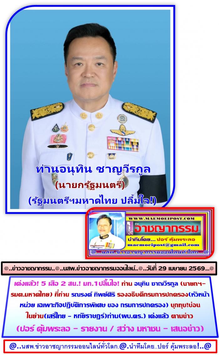 เพื่อดำเนินคดีตามกฎหมายต่อไปทำให้ ท่าน อนุทิน ชาญวีรกูลนายกฯ-รัฐมนตรีมหาดไทยปลื้มใจ! ในผลงานของ(หัวหน้าหน่วยเฉเพาะกิจ กรมการปกครอง)บุกทลายบ่อนสองบ่อนดังกล่าว...